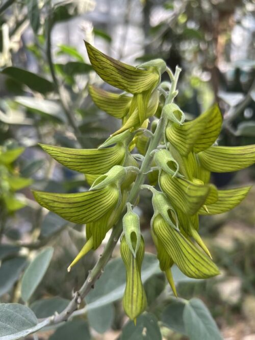 先日、京都府立植物園観覧温室で思わず足を止めてしまったのが、オーストラリア北西部~中央砂漠地帯からやってきたマメ科植物「クロタラリア カニンガミー」(Crotalaria cunninghamii)です。